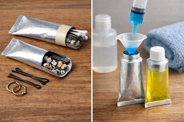 입구 캡이 있는 부분을 활용해 액체류 세제나 샴푸를 소량 소분하여 캠핑용으로 지참하는 것도 효율적인 재활용 방법이다. 튜브 입구(캡)를 열고 주사기나 소형 깔때기를 이용해 내용물을 채운다. 이때 튜브 용량의 80%만 채우는 것이 핵심이다. 기압 차이나 외부 압력으로 인해 내용물이 새어 나오는 것을 방지하기 위함이다.