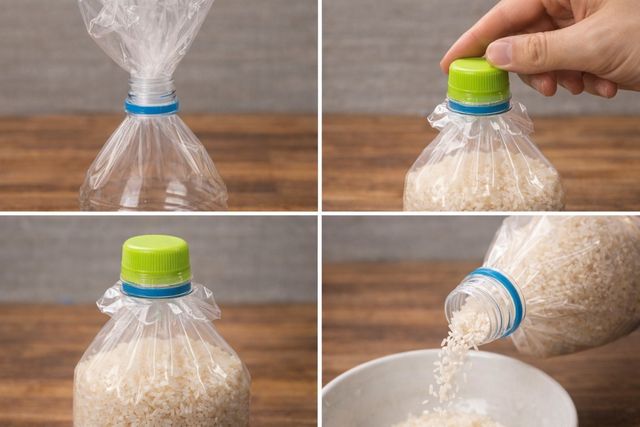 비닐봉지에 담긴 곡물이나 설탕, 가루류를 보관할 때 사이다 페트병의 윗부분(뚜껑 포함 약 5~10cm)은 밀폐 도구가 될 수 있다.