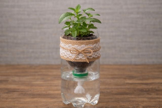 윗부분 뚜껑에 작은 구멍을 내고 부드러운 천이나 거즈를 통과시키면 아랫부분의 물이 삼투압 현상을 통해 흙으로 전달되어 물을 자주 줄 필요가 없는 스마트 화분으로 변신한다.