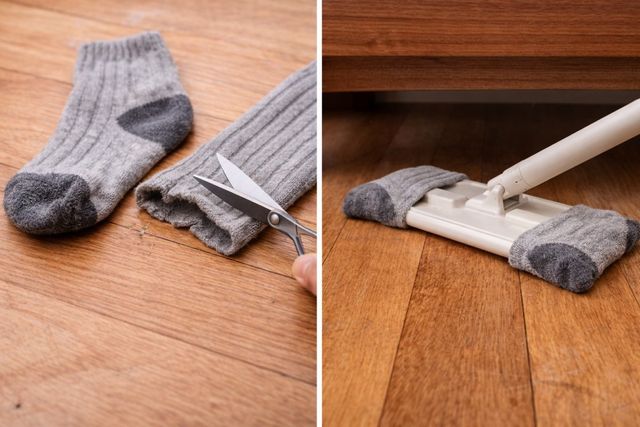 양말의 섬유 조직은 미세먼지를 끌어당기는 성질이 있어 가벼운 쓸림만으로도 바닥의 머리카락이나 반려동물의 털을 효과적으로 수거한다. 특히 올이 굵은 수면 양말이나 스포츠 양말은 표면적이 넓어 일반 걸레보다 더 많은 양의 먼지를 포집할 수 있다. 사용 후에는 양말만 벗겨서 버리면 되기 때문에 걸레를 빠는 수고를 덜어주며, 화학 성분이 포함된 일회용 청소포 사용을 줄이는 환경친화적 효과를 거둘 수 있다.