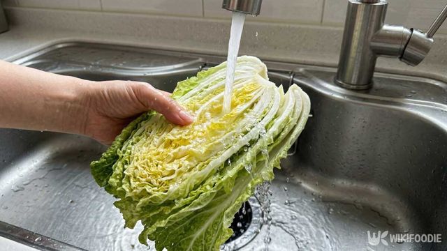① 알배추를 길게 3~4등분으로 나눈 뒤 깨끗이 씻어 물기를 제거한다.