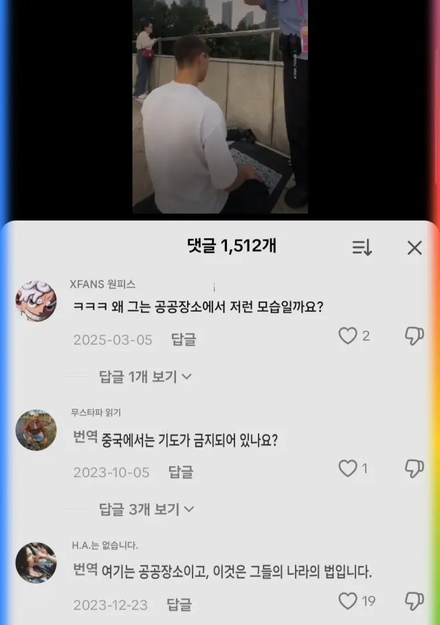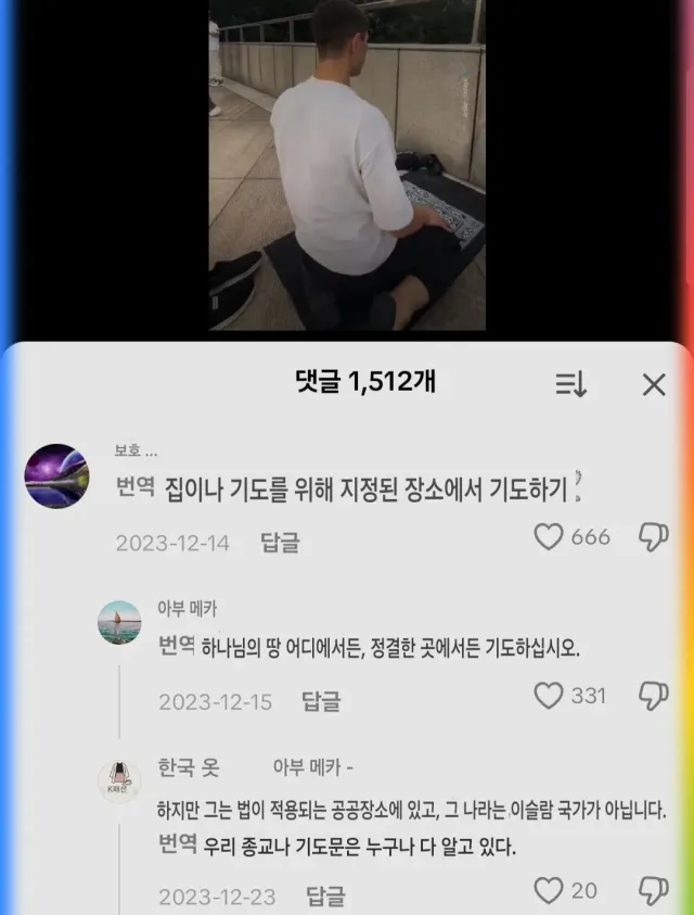 댓글 보면 다른 무슬림들도 남의 나라 길바닥에서 기도하는 걸 좋게 보질 않는 듯
