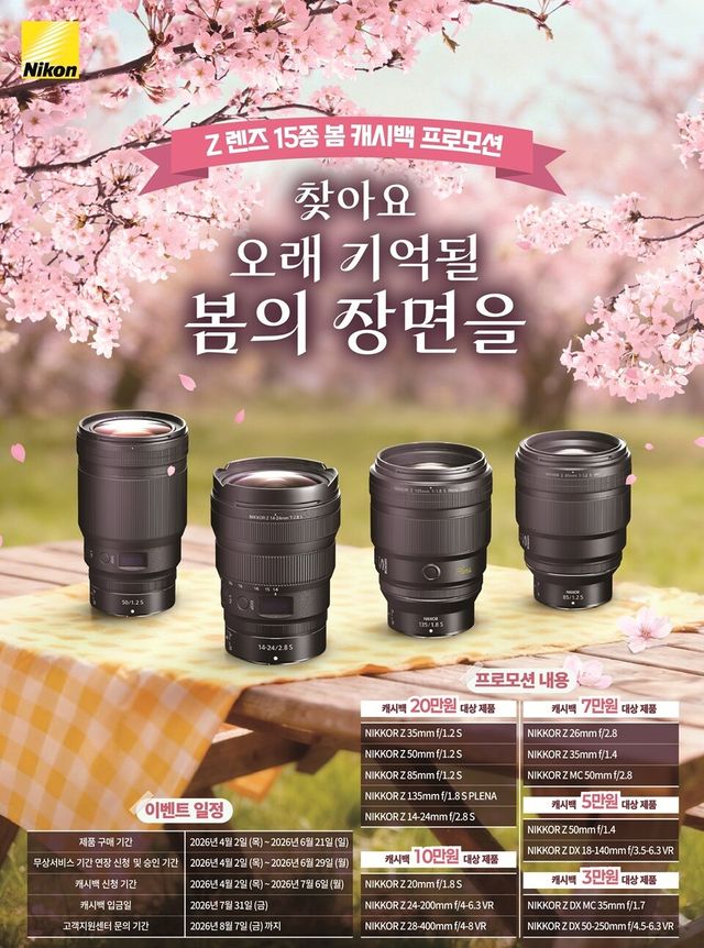 니콘이미징코리아가 봄 출사 시즌을 맞아 NIKKOR Z 렌즈 구매 고객을 대상으로 캐시백 혜택을 제공하는 ‘Z렌즈 15종 봄 캐시백 프로모션’을 진행한다.