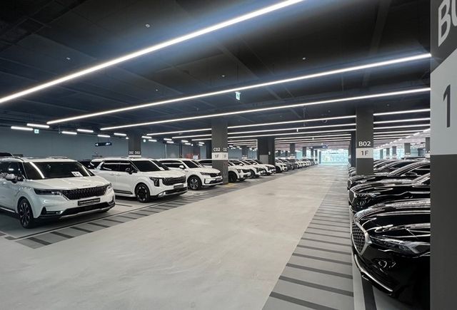 서울에서 차량으로 1시간40분여 떨어진 ‘기아 인증중고차 센터 평택 직영점’ 로비에 들어서자 천장까지 이어지는 초대형 미디어월이 눈길을 사로잡았다. 차량 입고부터 상품화, 출고에 이르는 전 과정을 직관적으로 보여준다.