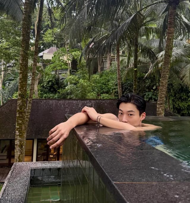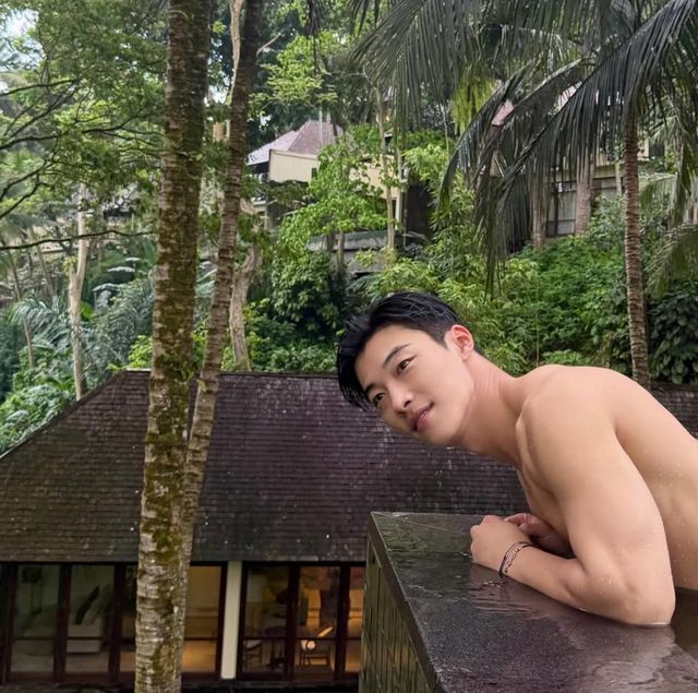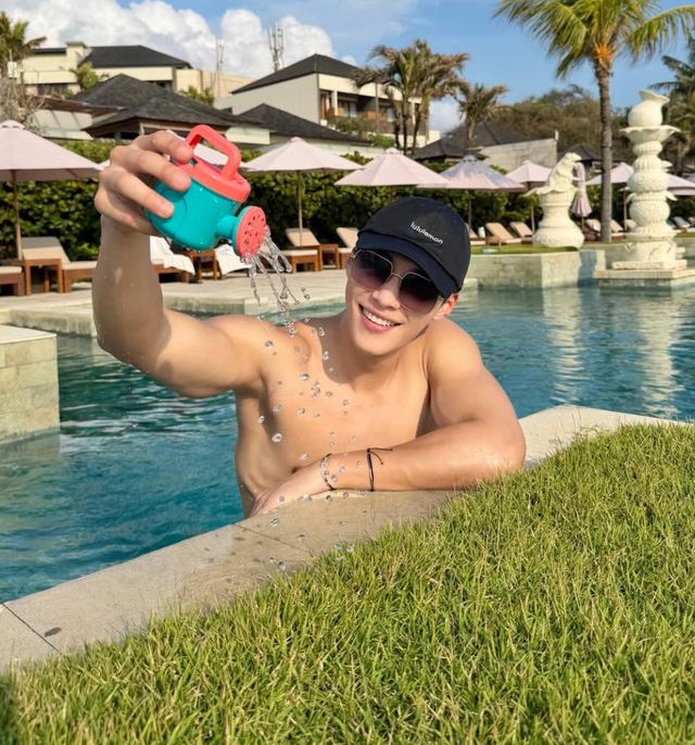 특히 시선을 끄는 것은 그의 균형 잡힌 피지컬이다. 물 위로 드러난 넓은 어깨와 선명한 팔 근육, 군더더기 없는 상체 라인이 돋보이며 건강미 넘치는 매력을 발산했다. 물가에 기대 자연스럽게 포즈를 취하거나 장난스럽게 물을 뿌리는 모습에서는 여유와 장난기가 동시에 느껴진다.