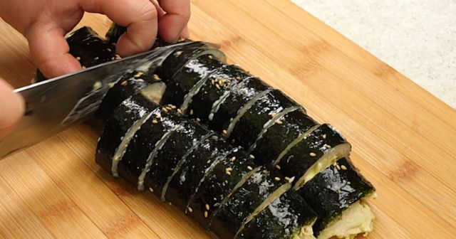 김밥을 말 때는 재료를 과하게 넣지 않는 것이 중요하다. 양배추는 부피가 크기 때문에 너무 많이 넣으면 김밥이 터질 수 있다. 적당한 양을 넣고 단단하게 말아준 뒤 먹기 좋은 크기로 썰면 완성된다. 마지막에 참기름을 살짝 바르고 깨를 뿌리면 고소한 풍미가 한층 살아난다.