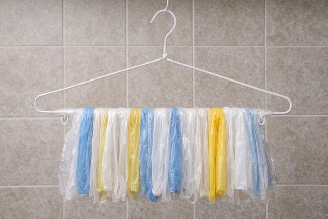 이때 비닐봉지를 옷걸이 하단에 길게 늘어뜨려 고정하면 슬리퍼에서 떨어지는 물방울을 받아내어 바닥 오염을 막는 임시 배수받이 역할을 겸할 수 있다.