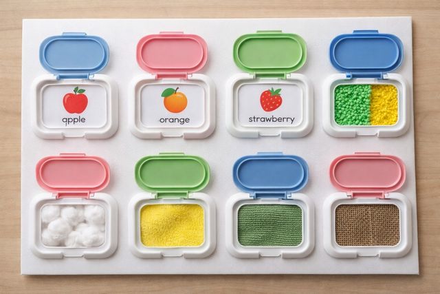 교육적 목적으로도 재활용이 가능하다. 보드판이나 두꺼운 도화지에 여러 개의 물티슈 뚜껑을 붙이고, 뚜껑을 열었을 때 과일 그림이나 단어가 나오도록 구성하면 영유아를 위한 '까꿍 판' 혹은 '낱말 맞히기 판'이 된다. 뚜껑마다 서로 다른 질감의 천이나 수세미, 솜 등을 넣어두면 아이들의 소근육 발달과 촉감 탐색을 돕는 훌륭한 교구가 된다.