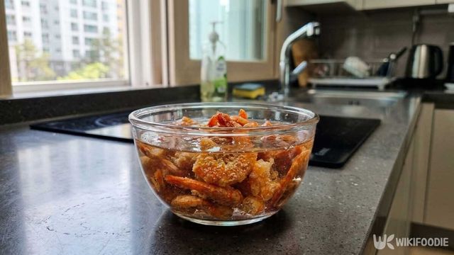 ⑥ 불린 건새우를 넣고 1분간 더 볶는다.