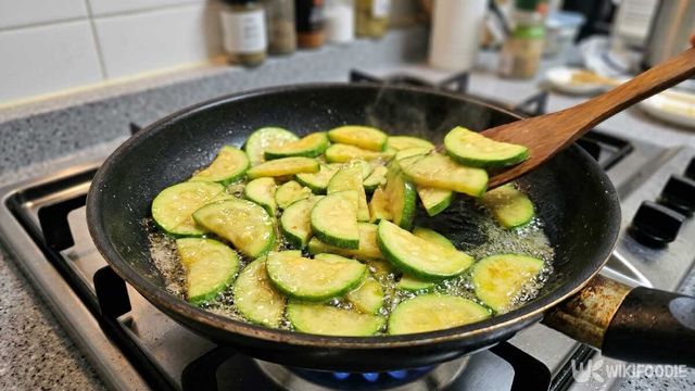 ④ 중불로 달군 팬에 들기름을 두르고 애호박을 3~4분간 볶는다.