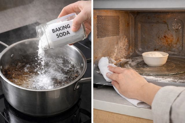 끓는 과정에서 베이킹소다가 오염물을 팽창시켜 표면에서 분리해 내는 원리다. 또한, 전자레인지 내부의 기름때는 젖은 행주에 베이킹소다를 묻혀 닦아낸 뒤 깨끗한 물행주로 마무리하면 독한 화학 세제 없이도 깔끔하게 관리할 수 있다.