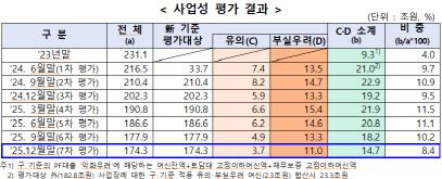 업권별로 보면 상호금융이 7조4000억원으로 가장 많았고, 이어 증권(3조5000억원), 여신전문금융(1조4000억원), 저축은행(1조3000억원), 은행·보험(각 5000억원) 순이었다. 작년 말까지 유의·부실 우려 사업장 중 18조5000억원 규모가 정리·재구조화됐다.