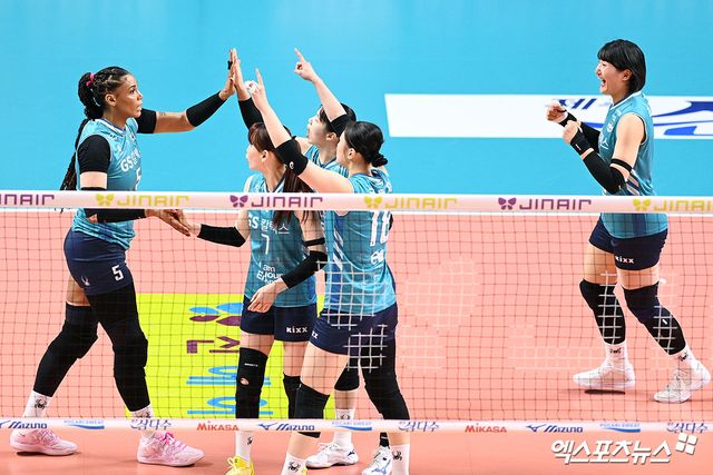 △GS칼텍스: 아웃사이드 히터 유서연~미들 블로커 오세연~아포짓 스파이커 실바~아웃사이드 히터 권민지~미들 블로커 최가은~세터 안혜진, 리베로 한수진