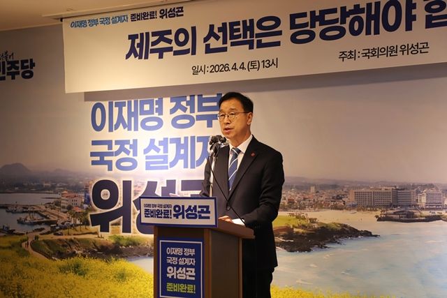 위 경선후보는 4일 제주시 연북로에 위치한 후보경선 준비사무소에서 기자회견을 열고 "청년 유출과 산업 정체, 관광 성장 둔화 등 복합 위기에 직면한 제주를 더 이상 관리형 행정으로 대응할 수는 없다"면서 "이재명 정부와 협력해 제주 몫을 찾아오고 미래 설계를 완성해야한다"고 강조했다.