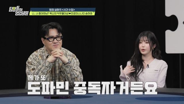 이와 함께 송하영의 활약도 더해진다. 데프콘이 앞서 출연한 박지원의 반응을 묻자 송하영은 “난리가 났다. 집에서 보는 줄 알았다고 할 정도로 엄청 재미있었다고 하더라”라고 말한다. 이어 “‘탐비’가 자극적인 소재가 많지 않나. 제가 도파민 중독자다. 저도 오늘 친구들과 집에서 보는 것처럼 즐기고 싶다”라고 덧붙여 웃음을 안긴다.