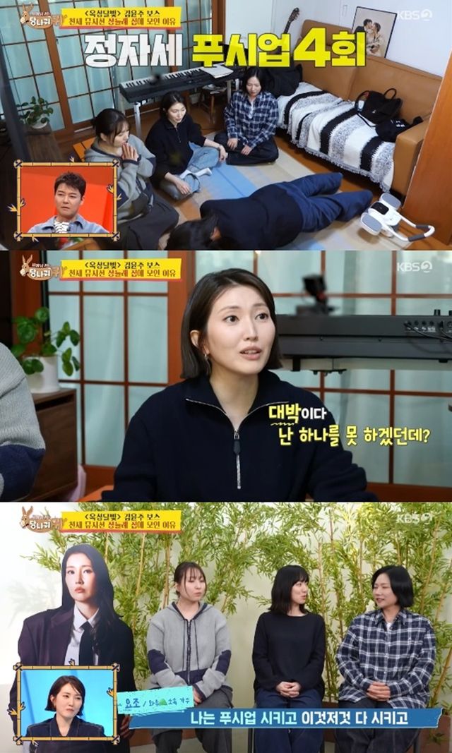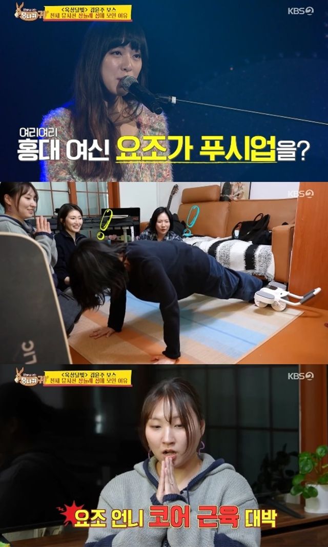 이날 김윤주는 요조와 함께 장들레 집을 찾았다가 갑자기 요조에게 푸시업을 시켰다.