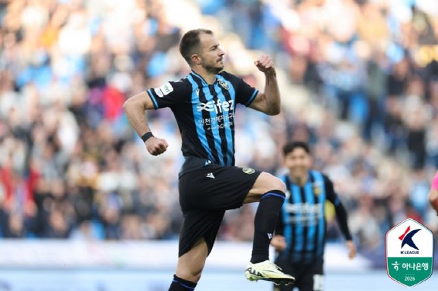 인천은 5일 오후 4시 30분 인천축구전용경기장에서 열린 하나은행 K리그1 2026 6라운드 안방 경기에서 2골을 터뜨린 무고사를 앞세워 김천 상무를 2-1로 제압했다.