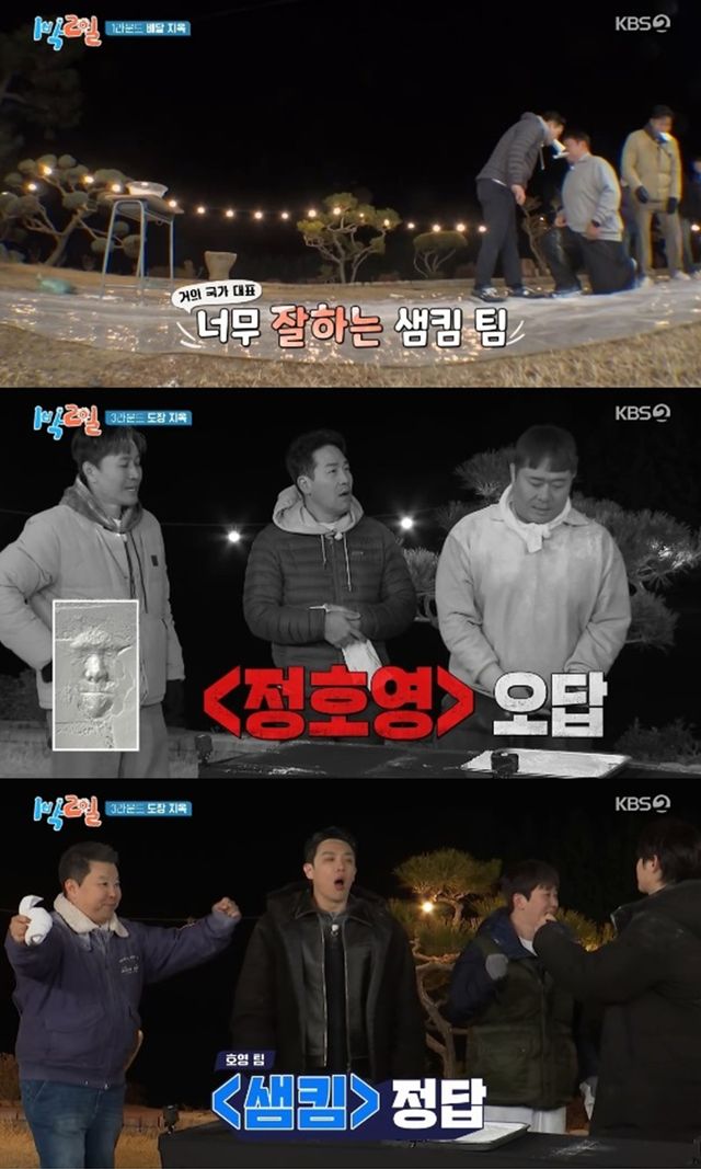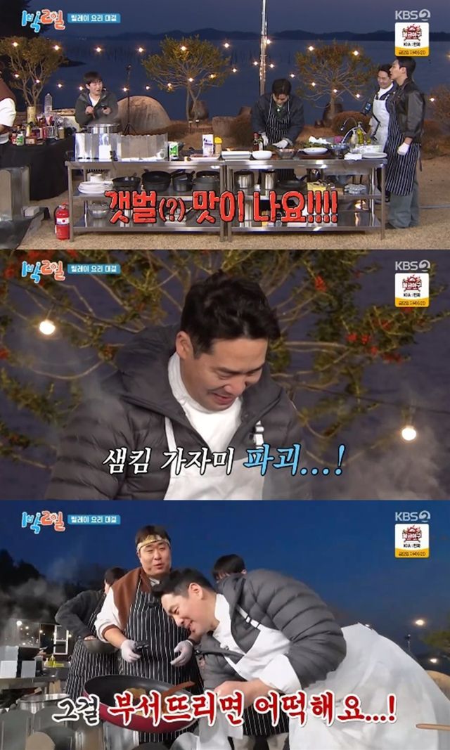 5일 방송된 KBS 2TV '1박 2일 시즌4'에서는 김종민, 문세윤, 이준, 딘딘, 유선호가 샘킴, 정호영과 함께 여행을 즐기는 모습이 전파를 탔다.