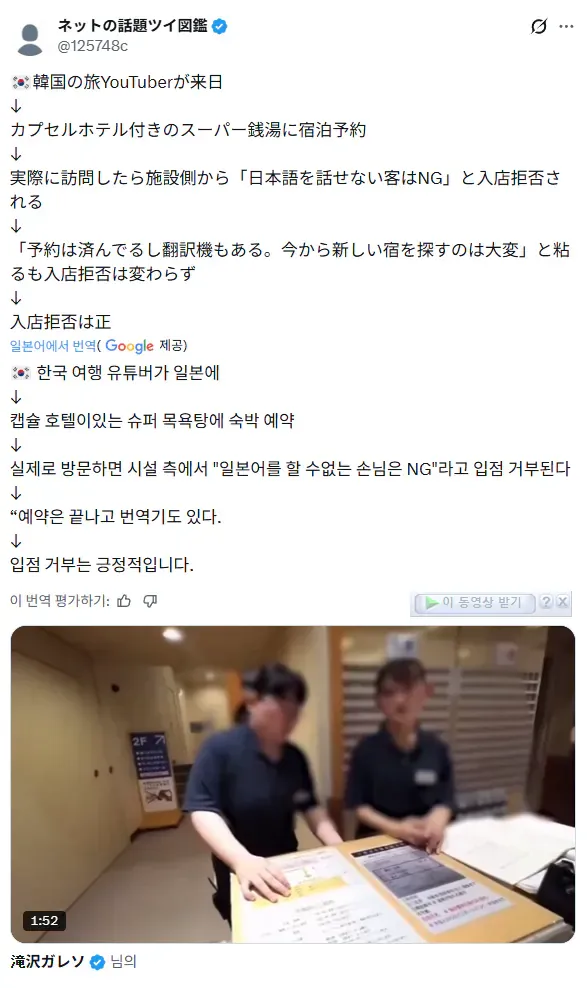일본 내에서도 "일본어 못하면 여행 오지 마라", "호텔 운영하면 영어 정도는 해야 되는거 아니냐" 다양한 의견이 나와서 논란중
