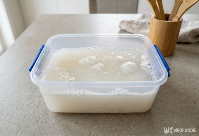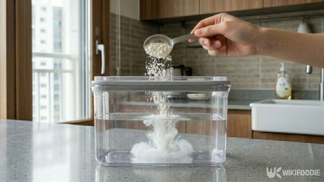 밀가루가 없다면 매일 밥을 지을 때 나오는 쌀뜨물을 이용할 수 있다. 쌀뜨물에는 전분 성분이 들어 있어 냄새를 흡착하는 능력이 뛰어난데, 첫 번째 씻은 물보다는 불순물이 적은 두 번째 쌀뜨물을 사용하는 것이 깔끔하다. 김치통에 쌀뜨물을 가득 채운 뒤 베이킹소다를 두 스푼 정도 섞어주면, 시너지 작용이 일어나 냄새 제거가 한층 수월해진다.