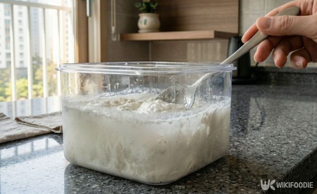 주방 찬장을 살펴보면, 유통기한이 지났거나 오래되어 먹기 어려운 밀가루가 하나쯤 남아 있다. 이런 밀가루는 김치통 냄새 제거에 활용할 수 있다. 먼저, 김치통의 절반 이상을 미지근한 물로 채운 뒤 밀가루를 서너 스푼 넉넉하게 넣어준다. 밀가루가 물 안에서 덩어리 지지 않도록 거품기나 숟가락을 이용해 골고루 풀어주는 과정이 필요하다. 밀가루 물이 뽀얗게 만들어지면 뚜껑을 꽉 닫고 그대로 하루 동안 방치해 냄새 입자가 밀가루에 달라붙을 시간을 준다.