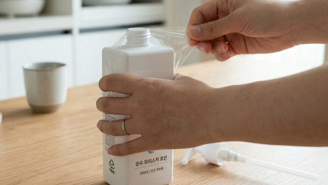 로션통 입구에 비닐을 씌우는 모습. AI가 생성한 자료사진.