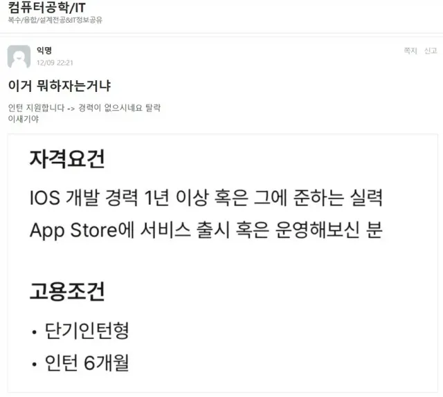 경력이 있어야 인턴 지원 가능함
