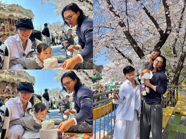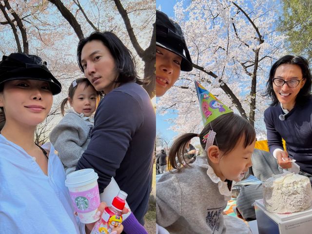 사진 속 허니제이는 남편 정담, 딸 러브와 함께 석촌호수를 찾아 벚꽃 나들이를 즐겼다. 딸 러브의 생일 케이크 초를 불며 생일을 축하하고 만개한 벚꽃 아래서 기념사진을 남기며 행복한 시간을 보냈다.