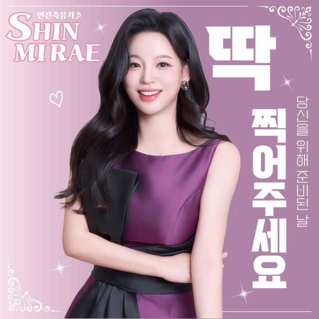 신미래는 6일 오후 6시 신곡 ‘딱! 찍어주세요’를 각종 온라인 음원사이트를 통해 발매한다. ‘딱! 찍어주세요’는 흥겨운 폴카 리듬 위에 좋아하는 사람에 대한 확신을 담은 곡으로, 경쾌한 분위기가 돋보인다.