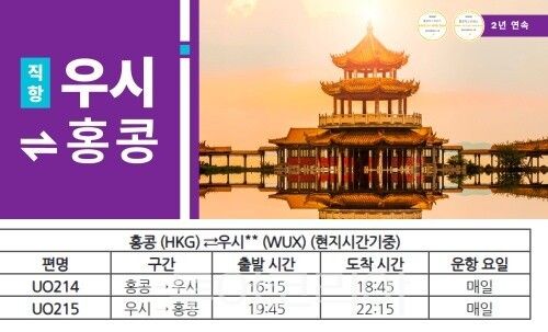 [투어코리아=조성란 기자] 홍콩익스프레스는 오는 7월 17일부터 홍콩과 우시 숴팡 국제공항(WUX)을 잇는 신규 직항 노선을 매일 운항한다. 이번 노선은 올해 들어 처음 선보이는 중국 본토 신규 취항으로, 노선 확장을 통한 네트워크 강화 전략의 일환이다.