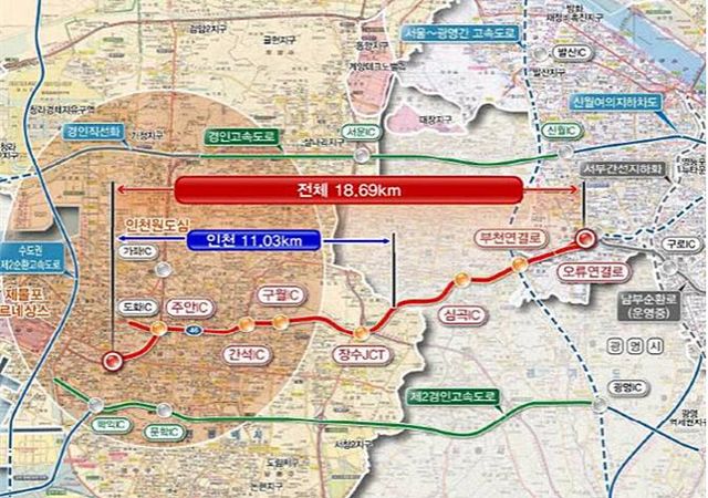 이 도로는 인천 미추홀구 용현동(인천대로)에서 남동구 장수IC와 경기 부천을 거쳐 서울 구로구 오류동(오류IC)까지 연결되는 길이 18.6㎞, 왕복 4~6차로의 소형차 전용도로로 건설된다.
