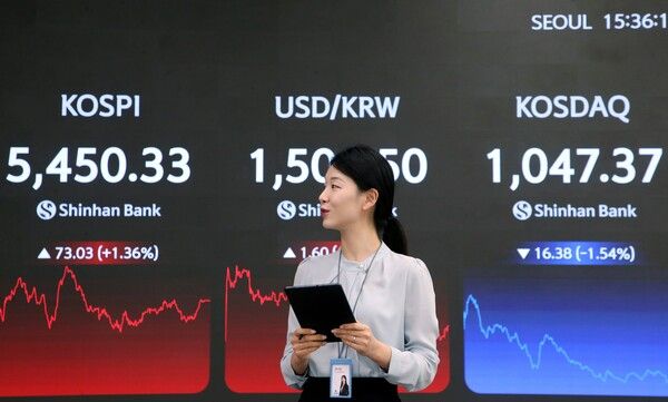 코스피는 73.03포인트(1.36%) 상승한 5450.33으로 장을 마감했다. 유가증권시장에서는 외국인 투자자가 1595억원 규모의 순매도를 기록했다.