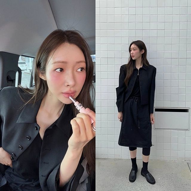 공개된 사진에는 블랙 톤의 미니멀한 스타일링을 소화한 그의 모습이 담겼다. 차량 안에서 립 제품을 바르는 셀카와 타일 벽 앞 전신 컷까지, 자연스러우면서도 화보 같은 분위기가 눈길을 끈다. 특히 은은하게 올라온 블러셔와 립 메이크업이 어우러지며 청초한 무드를 더했다.