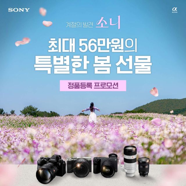 소니코리아가 봄철 야외 촬영 수요에 맞춰 카메라 및 렌즈 구매 고객 대상 정품등록 프로모션을 진행한다. 행사 기간은 4월 6일부터 6월 9일까지다.