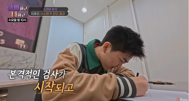 김정태 아내는 “지후가 기숙사가 있는 고등학교를 가고 싶다고 해서 진단을 받게 됐다”고 말했다. 하지만 지후는 검사 전부터 “박사님한테 들으면 마음이 망가질 것 같다”며 불안한 마음을 드러냈다.