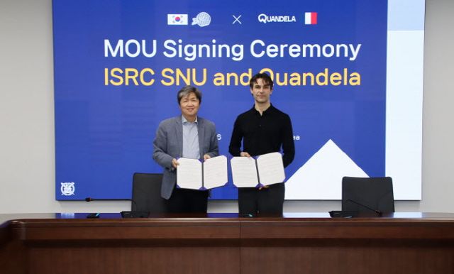 [이데일리 한광범 기자] 서울대 반도체공동연구소(ISRC)는 관악캠퍼스에서 프랑스의 글로벌 양자컴퓨터 기업 콴델라(Quandela)와 ‘반도체 공정 기반 양자컴퓨터 제조 및 공동 연구 협업’을 위한 업무협약(MOU)을 체결했다고 7일 밝혔다.