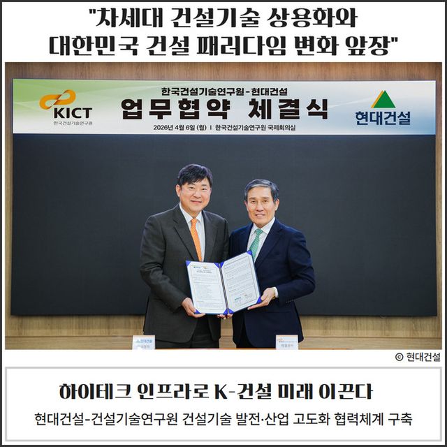 현대건설은 이를 통해 인프라·건축·스마트건설 등 핵심 사업 영역 전반 기술 경쟁력과 상품 완성도를 동시에 제고할 예정이다.