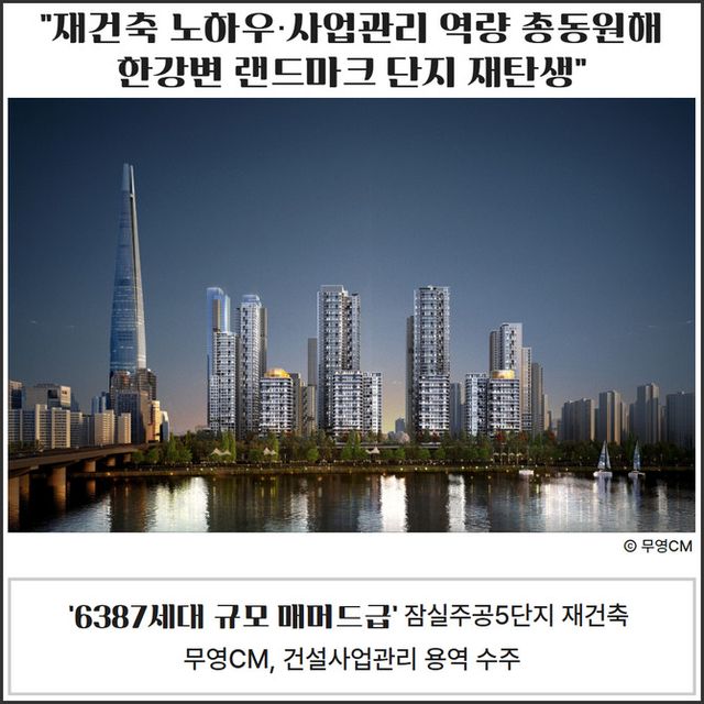 무영씨엠건축사사무소(이하 무영CM)가 잠실주공5단지 아파트 재건축 정비사업 건설사업관리 업체로 선정됐다.