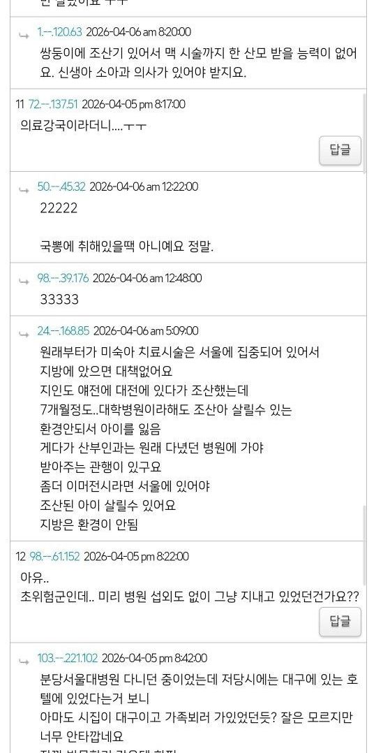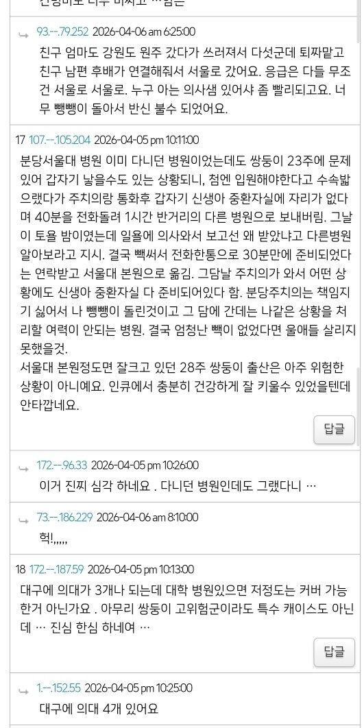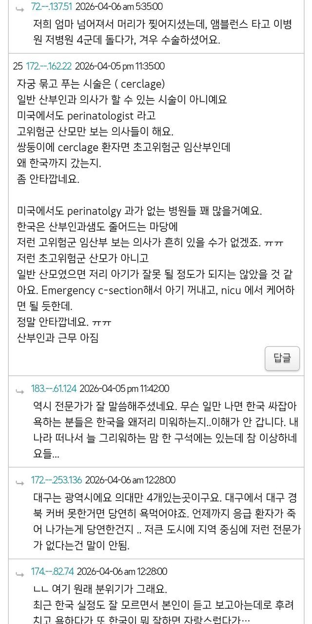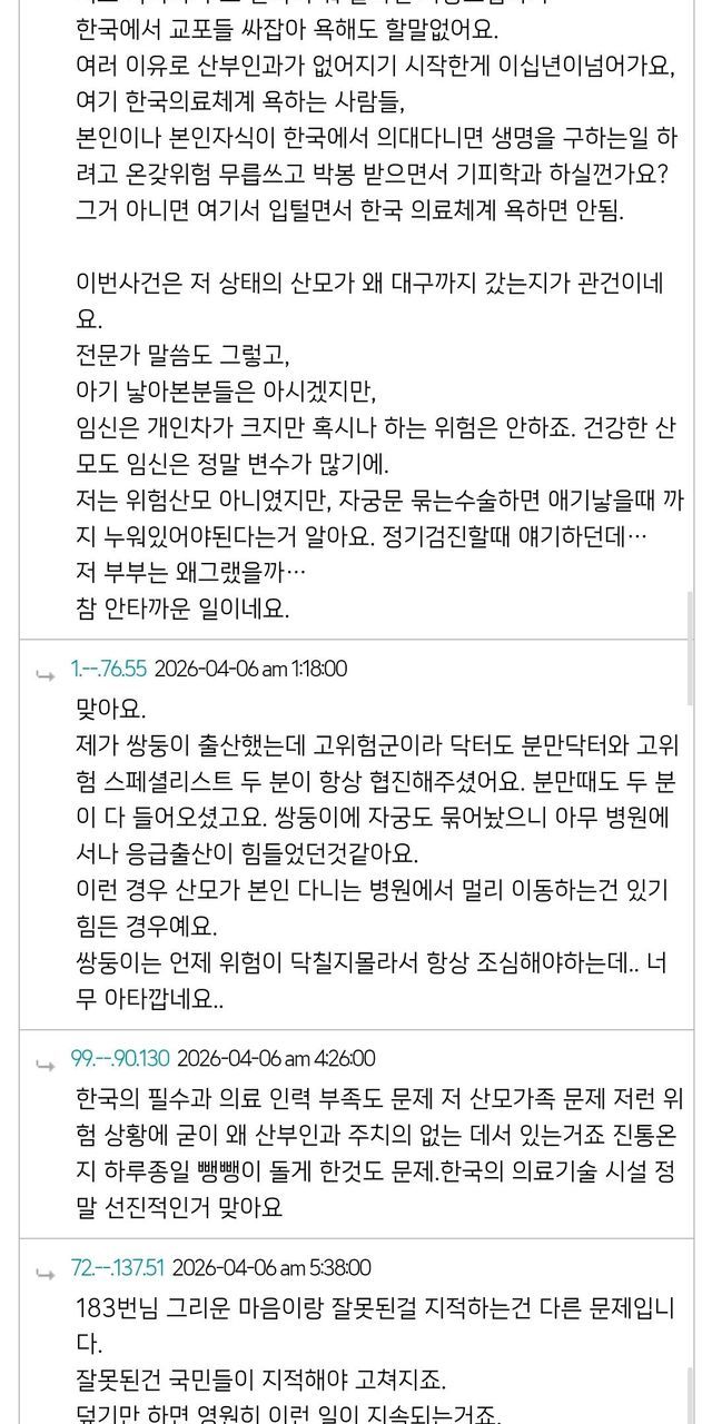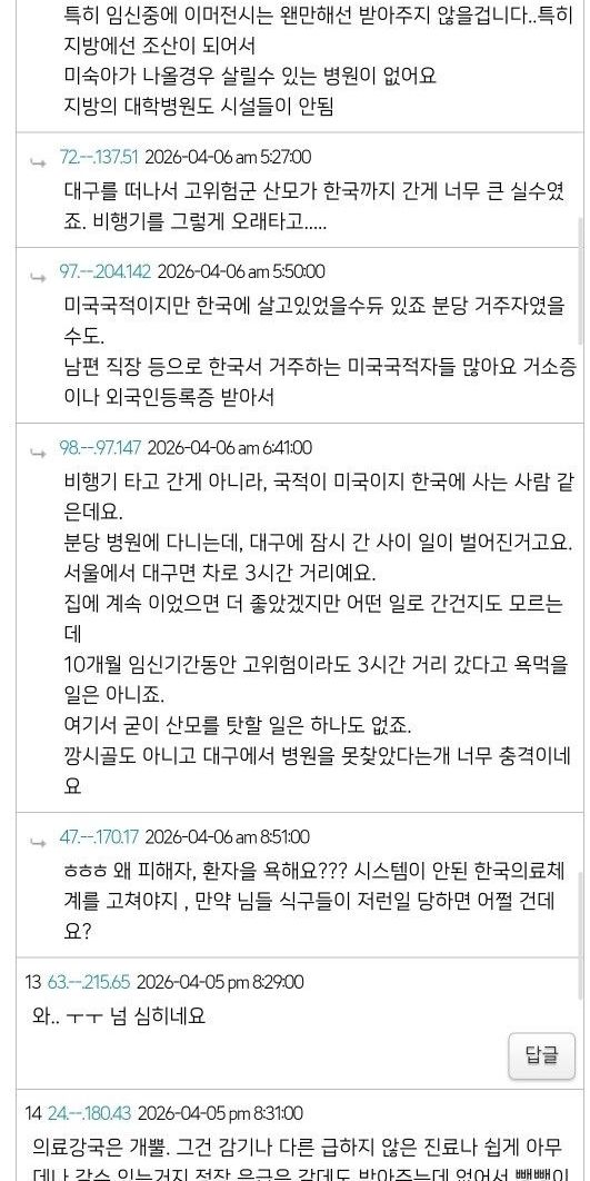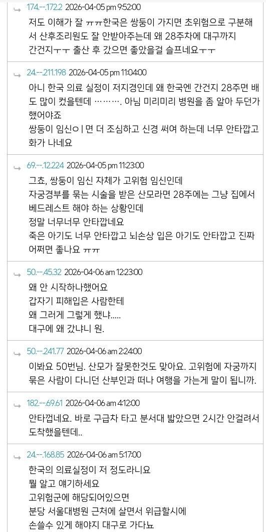대구 쌍둥이 산모 미국 교포 커뮤니티 반응