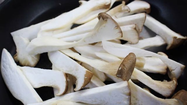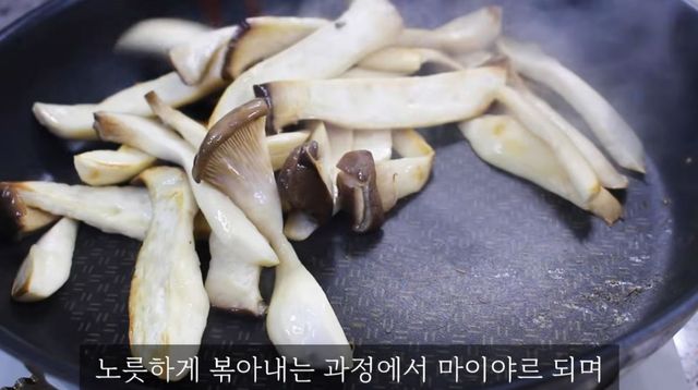 팬에서 노릇하게 볶아지고 있는 새송이 버섯. / 유튜브 '집밥 korean home cooking'