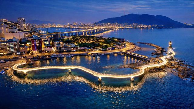 부산 송도해수욕장은 우리나라에서 처음 문을 연 공설 해수욕장으로, 오랜 시간 시민들의 쉼터 역할을 해온 곳이다. 1913년 개장한 이후 100년이 넘는 세월 동안 많은 이들의 발길이 이어졌고, 지금도 도심과 바다가 맞닿은 부산의 대표적인 해변 명소로 자리하고 있다. 화려한 도심 풍경과 너른 바다가 어우러지는 이곳은 사계절 내내 찾는 이가 많다. 특히 해 질 녘 수평선 너머로 붉게 물드는 노을은 바다와 도심의 불빛, 그리고 해상 케이블카의 조명이 만나 서정적인 분위기를 자아낸다.