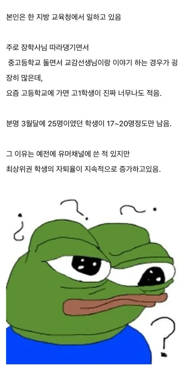 교육청 공무원이 말하는 고1 자퇴하는 각기 다른 이유