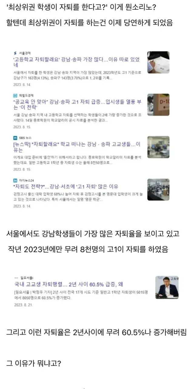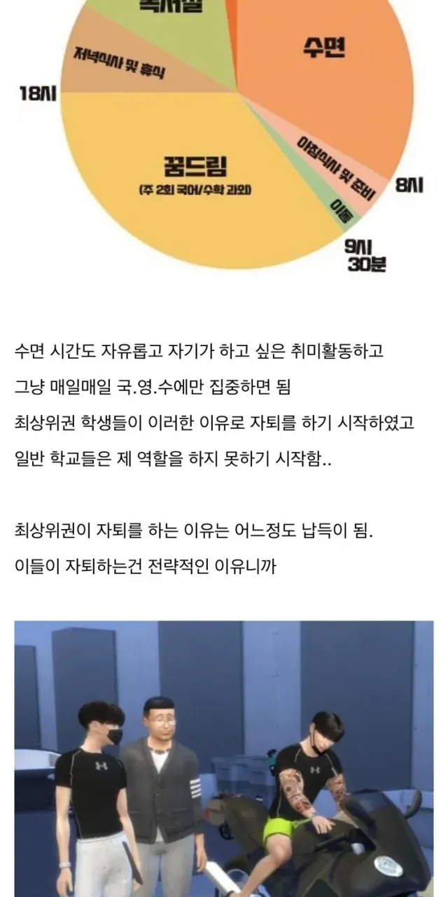 - 최상위권 학생들은 공부를 위해 전략적으로 자퇴를 하고 있음