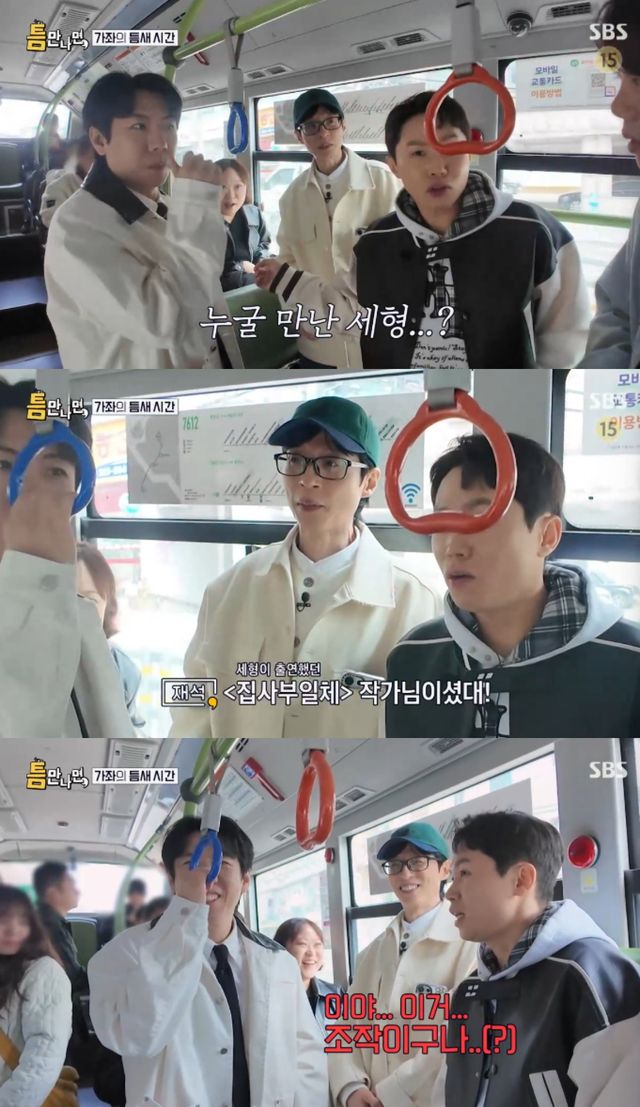 양세형이 만난 사람은 '집사부일체' 작가였다. 양세형은 "(작가를 보는 순간) 이거 조작이구나 싶었다. 작가가 미리 타고있다고?"라고 의심해 웃음을 자아냈다.