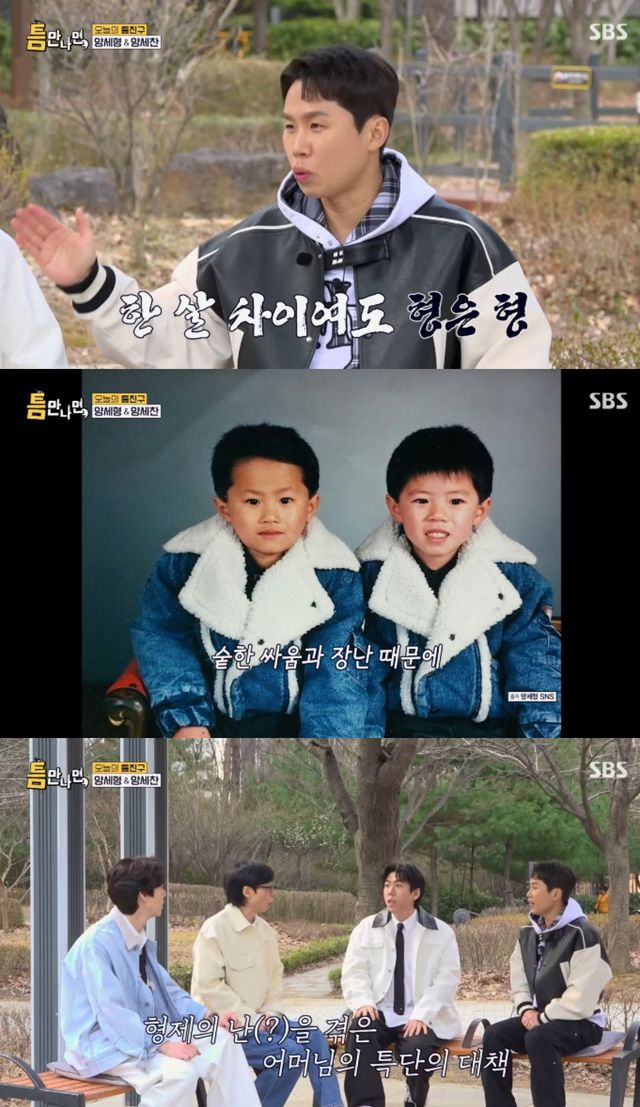 (엑스포츠뉴스 오수정 기자) '틈만 나면'에서 양세형과 양세찬이 어린 시절을 회상했다.