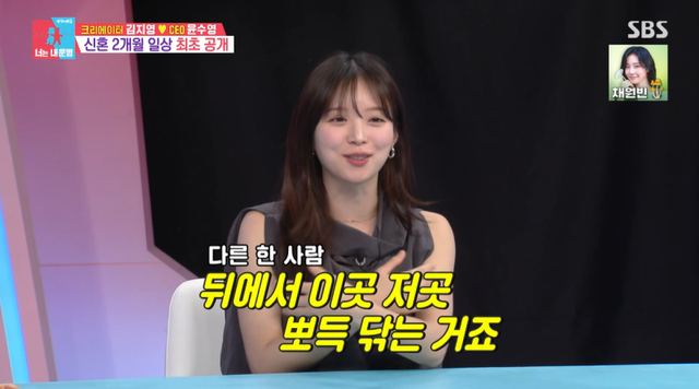 이날 모닝 뽀뽀로 하루를 시작한 김지영, 윤수영은 나란히 영양제를 복용한 후 함께 화장실에 들어갔다. 이 모습을 VCR로 지켜보던 패널들은 이유를 물었고, 김지영은 “샤워를 매번 같이한다”고 설명했다.