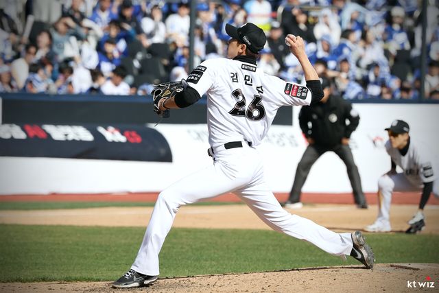 김민수는 5일 수원 케이티 위즈 파크에서 열린 삼성 라이온즈와 2026 신한 SOL Bank KBO 리그 정규시즌 홈경기에서 팀이 2-0으로 앞서던 7회 등판했다.