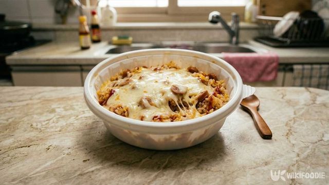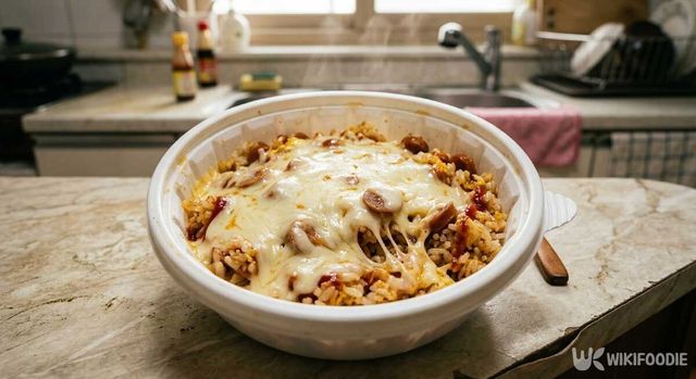 ⑥ 뚜껑을 덮고 치즈가 녹을 때까지 전자레인지에 2분 더 돌리면 완성이다.