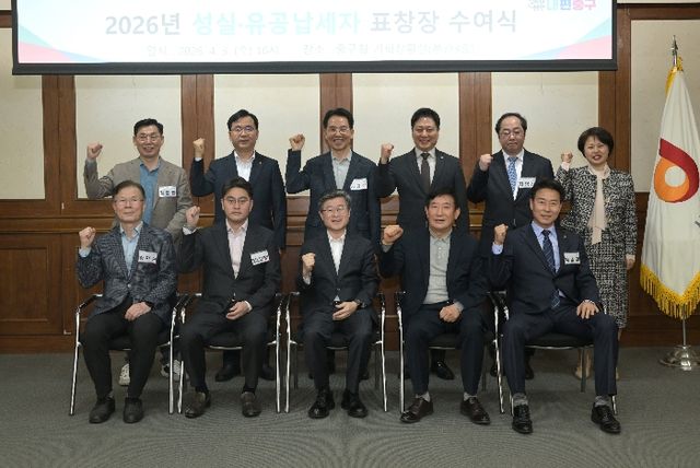 [파이낸셜경제=김영란 기자] 서울 중구는 올해 성실·지방재정 확충 기여 납세자에 개인 3명과 법인 2곳을 선정했다. '서울시 유공 납세자'에는 중구 추천으로 개인 4명과 법인 2곳이 이름을 올렸다. 구는 지난 3일 '2026 성실·유공납세자 표창 수여식'을 열고 이들에게 감사의 뜻을 전했다.