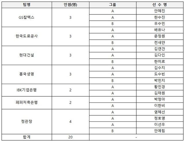 정관장에선 정호영을 비롯해 세터 염혜선과 이선우(이상 A등급) 안혜림(B등급) 등 총 4명이 FA 시장에 나왔다. 우승 팀 GS 칼텍스에선 안혜진과 한수진(이상 A등급) 우수민(B등급) 등 3명이, 준우승팀 한국도로공사에선 배유나와 문정원(이상 A등급) 전새얀(B등급) 등 세 선수가 FA 자격을 얻었다.